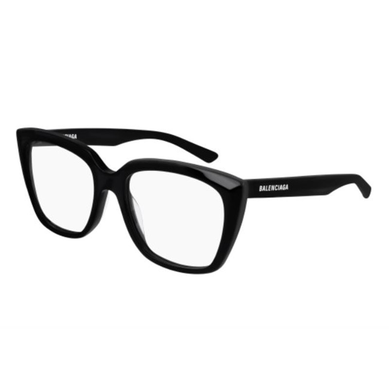 Classica montatura in acetato rivisitata in stile Balenciaga, con bordi a punta esagerati ottenuti tramite fresatura tridimensionale. Forma tradizionale con un tocco di stile. Modello proposto a una nuova fascia di prezzo base per una clientela aspirazionale. Logo Balenciaga a contrasto sull’asta sinistra.